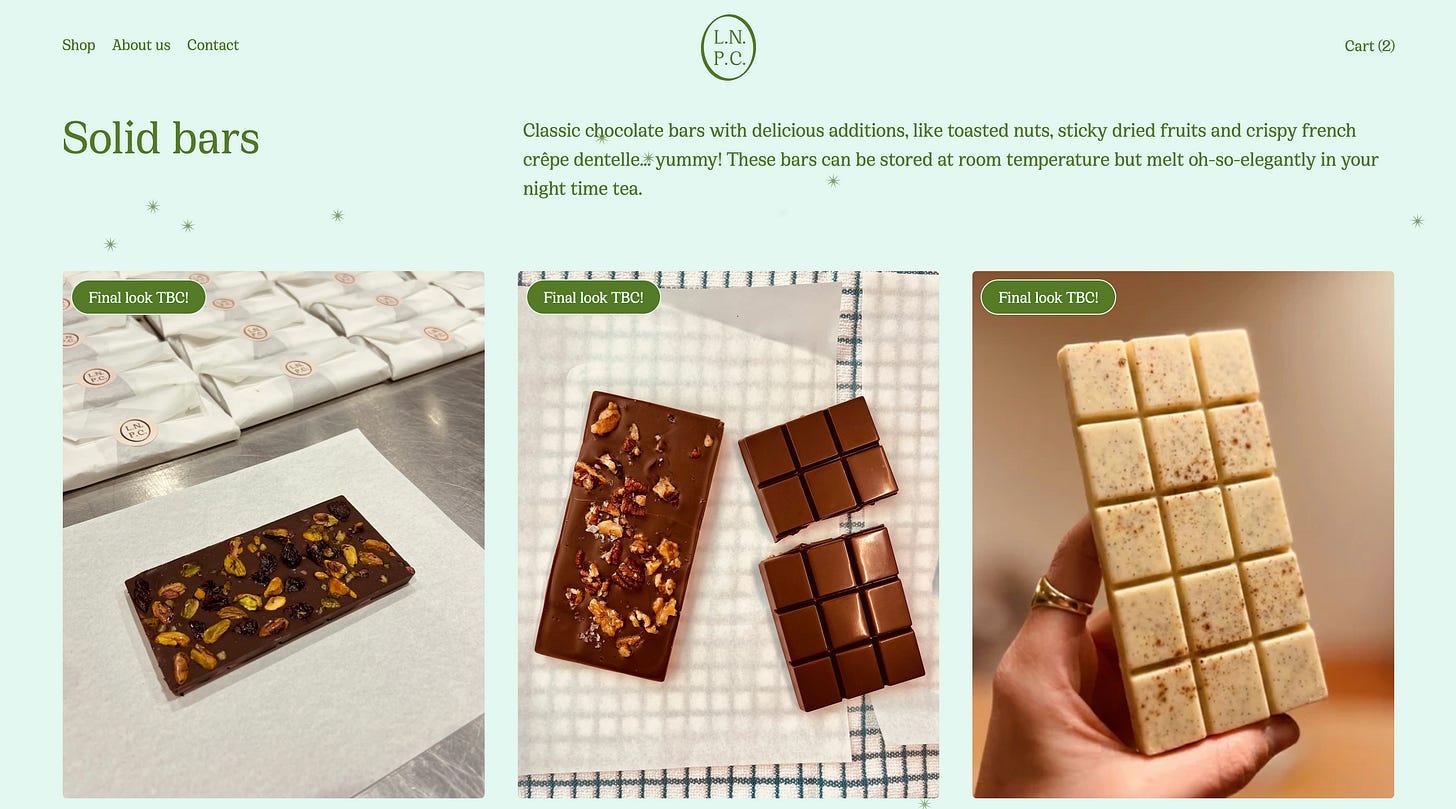 A quick note: our product photography is still in progress, so we’ll be updating images soon to give you a clearer picture of what you’ll receive. But I promise you’ll get gorgeous, delicious chocolate no matter what.